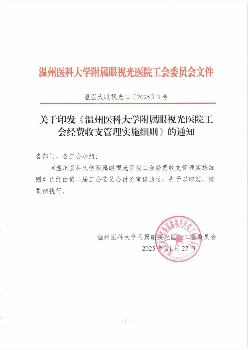 关于印发《温州医科大学附属眼视光医院工会经费收支管理实施细则》的通知