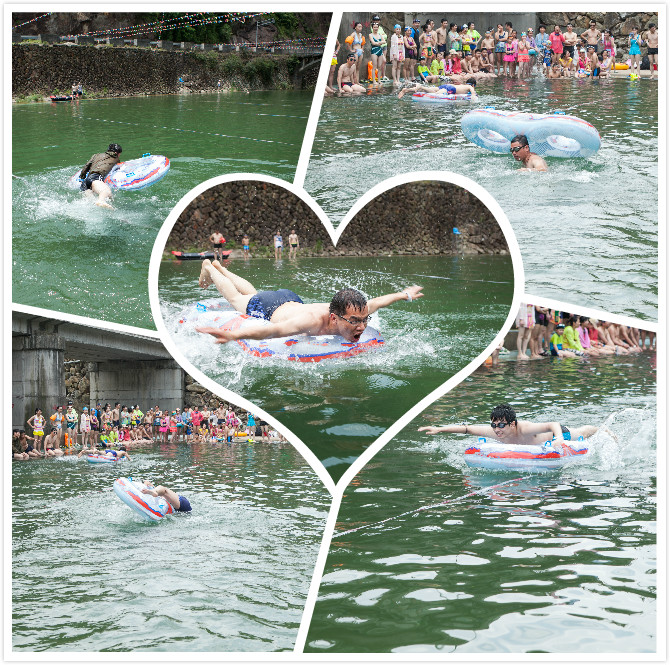 时间就在这精彩的比赛中流逝,下午是自由活动。整个水上乐园根据溪水的深浅,依次建有“风暴造浪池”、水上自行车和划船区、成人泳池以及儿童泳池和彩虹滑梯游乐区,同时开辟了激流勇进和儿童水屋的区域,供不同层次的游客选择游玩。最受我们青睐的当属5000平方米的“风暴造浪池”,每20分钟会制造一次汹涌波涛,每次长达半个小时,我们在冰凉的溪水中也能感受到“风暴”的刺激,浪花一个接着一个拍打过来,让我想起一句话——长江后浪推前浪,一浪赛过一浪。勇敢点的人,他们就会站在最刺激的地方,让浪拍打过来,而有点胆小的就往里靠,浪打过来她们就像坐微型过山车一样。还有激流勇进,我胆子比较小,走到平台上,最终还是不敢坐上去,男的比较大胆,玩了一次又一次,很刺激。三五成群坐在船里,聊聊天,慢慢划,玩玩水其实也是一种享受。