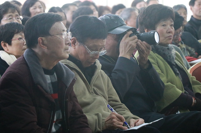 随着物质生活水平的提高,老年人们对健康的关注程度也越来越高。3月15日,乐清市老年大学的教室里时而静谧无声,时而掌声不断。我院白内障临床中心主任俞阿勇教授正在为这里的200多位学员们开展眼健康公益科普讲座。他紧紧围绕老年人常见的眼病的种类及如何预防等内容,并着重介绍了白内障及治疗方法,语言通俗易懂,内容深入浅出,充分帮助学员们了解了自己的眼睛健康状况,提高大家的眼健康意识。不少学员们一边听讲一边认真的做着笔记,现场爱眼护眼气氛浓烈。