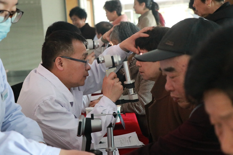 当天,还开展了老年人眼健康筛查义诊活动。活动现场、我院防盲治盲公益医疗团队的医护人员们给大家分发了免费视力检查表,老人可以免费接受测视力、裂隙灯、血压等检查。不少老人主动拿出过去做的眼科检查资料,向医生们提出自己的疑问,医生们则针对每位老人的眼睛状况给予了适当的建议。根据统计,当天共建档150余人,其中有20余位患者需要做进一步治疗。