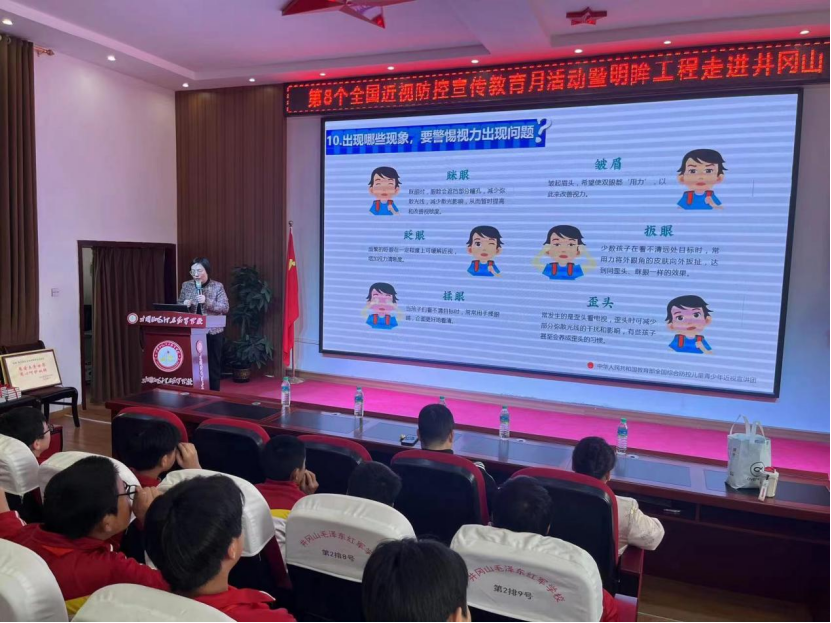 时值第8个全国近视防控宣传教育月,温医大眼视光执行院长陈洁、党委副书记陈先建带领公益医疗专家团队和大学生近视防控宣讲团志愿者日前来到井冈山,为当地的儿童青少年进行视力普查、免费验光配镜,举办科普讲座、捐赠医疗设备和相关书籍。同时,公益医疗专家团队在当地开展白内障复明手术,让老年白内障患者得以重见光明。