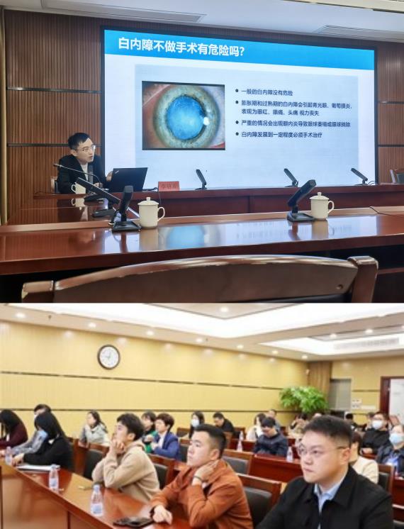 在7日上午的活动启动仪式上,干眼专科副主任李锦阳用通俗易懂的文字和图片为大家普及了科学用眼、青少年近视防控、以及中老年常见眼病知识,让机关工作人员进一步加深对眼健康和保健的认识。