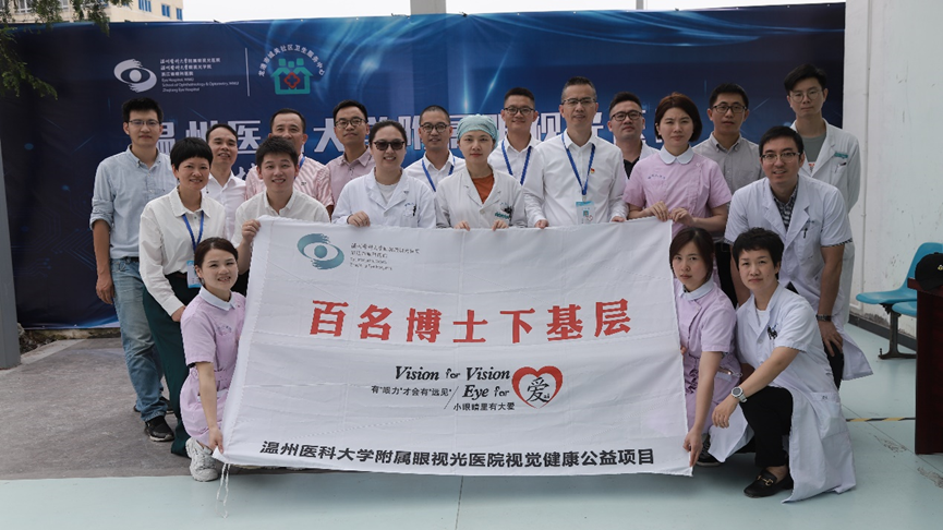 温州医科大学附属眼视光医院“EYE先锋”党团志愿服务总队,成立于2016年,拥有多支志愿服务团队,先后开展了“国际特殊奥林匹克项目”“明眸工程”“川藏青健康光明行”“青少年近视防控”“百名博士下基层项目”等志愿服务项目,对内扎根医院,为每位来院患者及家属就医提供温馨服务,对外服务社会“走出去”,足迹遍布温州,走进川藏青等中西部地区,甚至走出国门到达非洲。