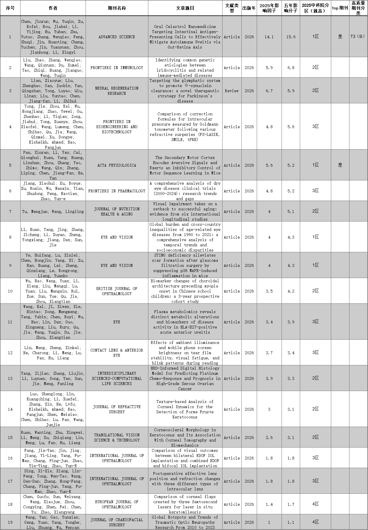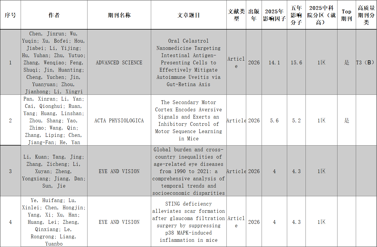 学科动态|温医大眼视光科研产出情况速览(论文)(2026.02期)