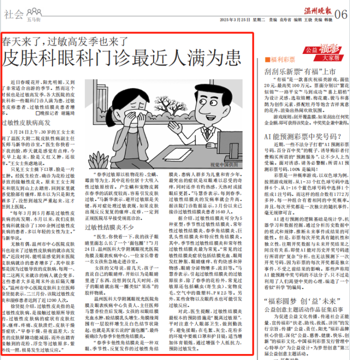 温州晚报:春天来了,过敏高发季也来了 眼科门诊最近人满为患
