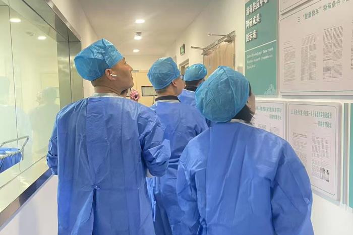 活动中,消毒供应中心护士长通过现场讲解和实地参观相结合的方式,向参观者展示了器械的“回收—分类—清洗—消毒—检查—包装—灭菌—储存—发放”九大环节。在严格遵循感控要求的前提下,参观人员了解了全自动清洗消毒机、脉动真空灭菌器等设备的运行过程,并对精密器械的清洗和检查流程有了直观认识。