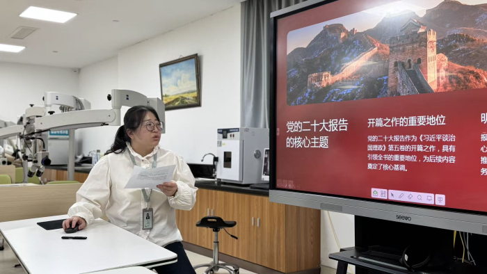 读书会环节,陈琪老师领读《习近平谈治国理政》相关篇章,文章以“以中国式现代化全面推进中华民族伟大复兴”为主题,阐释中国式现代化的本质要求与重大原则、“五个特征”的内在逻辑,以及教育—科技—人才一体推进的实践路径。未来,支部将结合学院实际,明确推进课程思政全覆盖和“大思政课”建设,围绕国家战略与“卡脖子”问题凝练科研选题,以教师队伍能力与作风提升支撑高质量育人。