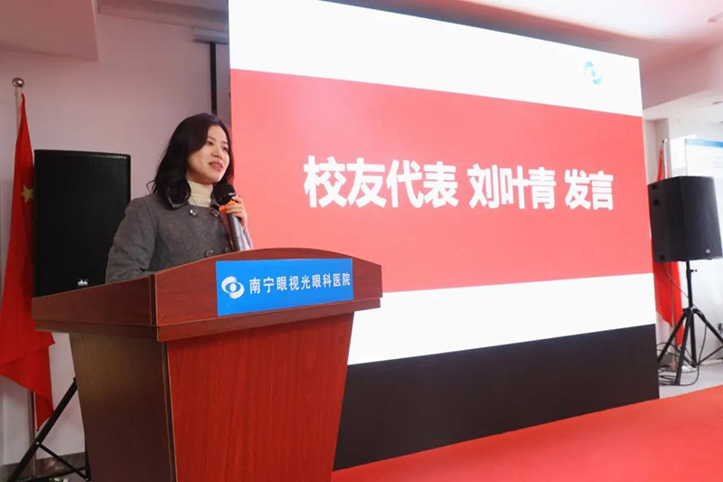 会上中国人民解放军联勤保障部队第九二四医院,2017级温州医科大学眼科硕士毕业生刘叶青校友代表发言。