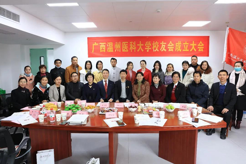 温州医科大学党委书记吕一军、温州医科大学校友会总会长瞿佳通过视频祝贺“广西温州医科大学校友会”成立。会议听取了温州医科大学校友总会介绍和广西温州医科大学校友会筹备情况的汇报,审议并通过了广西温州医科大学校友会章程和理事会成员名单。会议选举南宁眼视光眼科医院院长俞阿勇为会长、广西中医药大学第一附属医院副院长吴西西为名誉会长。广西壮族自治区人民医院视光中心副主任蓝方方、广西医科大学第一附属医院陈金卯主任医师、南宁眼视光医院覃小平副主任医师为副会长。同时选举产生秘书长、副秘书长及理事名单。广西校友会会员遍布南宁、柳州、桂林、百色、河池、钦州等各地级市县。