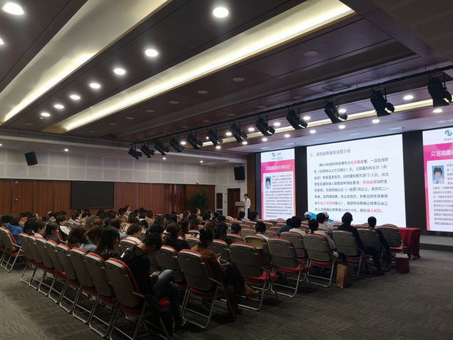 活动二:院感专家讲座。本次院感处邀请了本院临检中心郑美琴主任,向全院医护人员做专题讲座《艾滋梅毒离我们有多远?》。在艾滋、梅毒等血源性传播传染病患病率不断升高的今天,我们医务人员职业暴露额风险也进一步增加,因此如何有效的做好此类传染病的防护工作也越来越引起大家的重视。郑美琴主任通过对近几年温州市这几类疾病的发生率、地域分布、年龄分布、重点人群分布等的分析,提出了医院对于这类疾病的防控的要点。同时,她也讲解了本院传染病报告的流程以及提示医护人员的注意事项,这些都是医护工作者在临床时刻碰到的情形,让每位同事都敲响了职业暴露防护的警钟。
