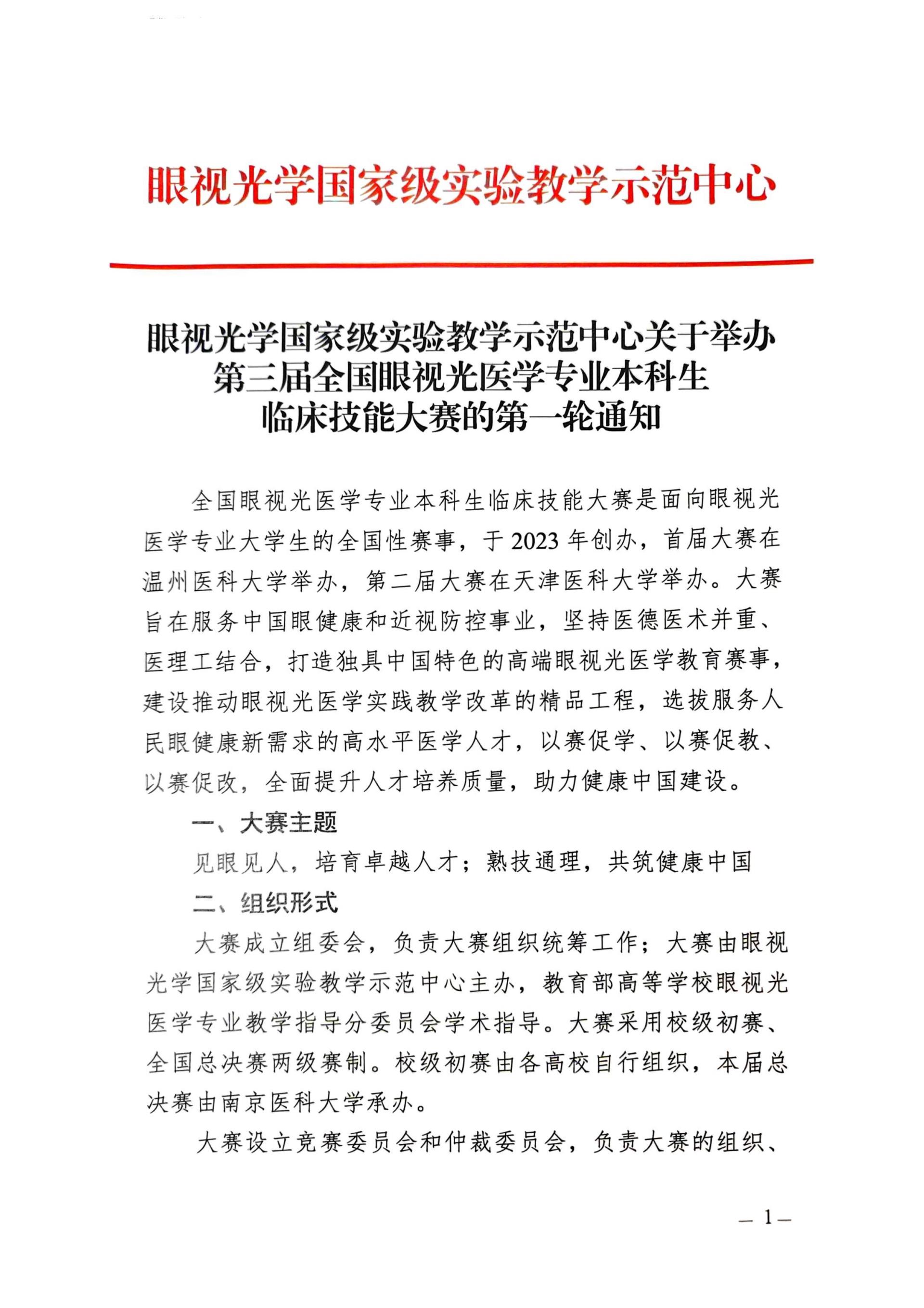 第三届全国眼视光医学专业本科生临床技能大赛第二轮通知