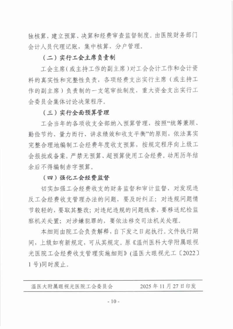 关于印发《温州医科大学附属眼视光医院工会经费收支管理实施细则》的通知