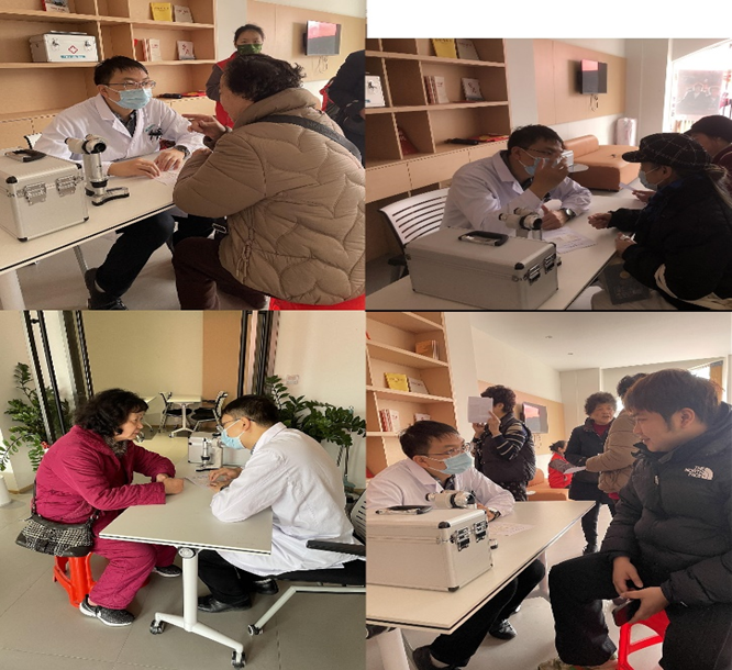 活动现场,党支部和科室成员迅速进入各自的工作岗位,有条不紊地开展各项检查工作。在视力检查区域,党员们耐心引导居民们站在合适的距离,一个一个地进行视力测试。遇到视力不太好的老人,党员们会细心询问他们平时看东西的清晰度、是否有重影等情况,以便更全面地了解他们的视力状况。