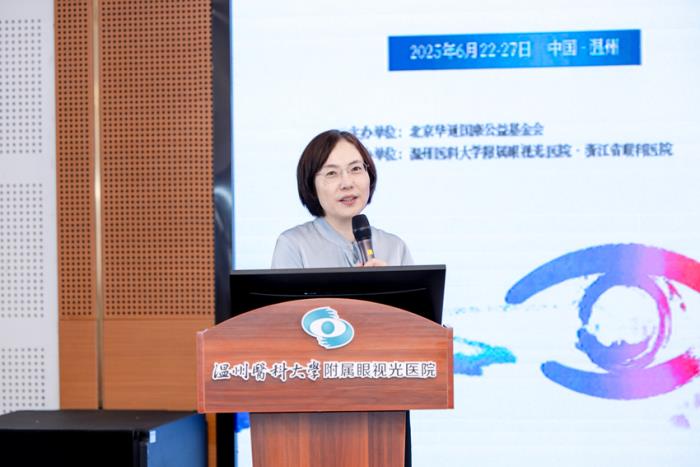 6月22日上午,“温眼在县”基层医院眼科人才队伍国内进修班项目启动仪式在温州医科大学附属眼视光医院5楼学术报告厅举行。北京华通国康公益基金会副秘书长李金兵,温医大附属眼视光医院党委书记张建,院长、党委副书记陈洁,党委副书记陈先建,副院长胡亮,副院长陈绮等出席仪式,来自陕西、辽宁、四川、河南等13个省、26家县市域医院的30余位眼科骨干医师,医院各临床专科主任、职能科室负责人等参会。本次启动仪式由医院副院长梁远波主持。