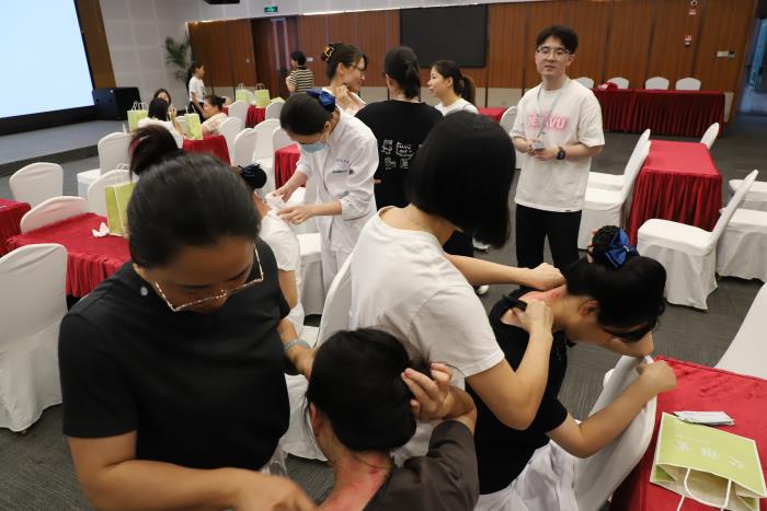 时值七月,暑热夹湿。为弘扬传统中医文化,关心关爱员工身心健康,7月3日中午,由温医大附属眼视光医院工会主办,第六工会小组承办的中医刮痧体验活动在五楼报告厅顺利举办,真正将中医养生理念和贴心关怀送到员工身边。