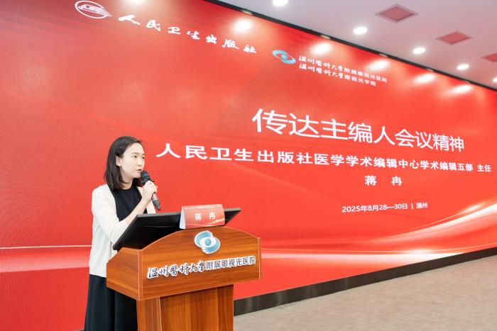 全体会议上,人民卫生出版社医学学术编辑中心学术编辑五部主任蒋冉强调了主编人会议精神,指出本轮教材编写要紧密围绕国家眼健康战略,坚持正确导向,突出时代特色,提升教材的权威性和实用性。人民卫生出版社医学学术编辑中心陈慧老师详细讲解了纸质教材编写要求,强调要遵循 “三基五性三特定” 原则,确保内容科学严谨、术语统一、体例规范,同时注重与临床实践相结合,体现学科前沿知识。人民卫生电子音像出版社融合出版中心副主任雷媛讲解了数字资源编写要求,明确数字内容要与纸质教材一体化设计、同步编写、同时定稿,涵盖教学课件、随堂习题、案例分析、操作视频及动画等多种类型,以实现 “纸数融合”,助力提升教学质量。