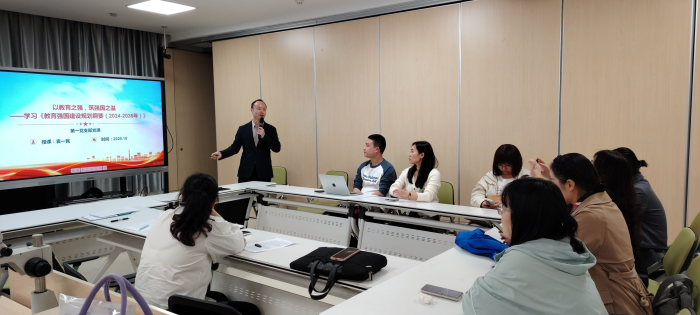 2025年10月29日18:00,行政第一党支部在医教楼举办“学习教育强国规划纲要”暨“第一议题”专题学习。会议由党支部书记袁一民主持,会议坚持以习近平新时代中国特色社会主义思想为指导,统筹推进理论武装、能力提升、作风建设、担当作为。