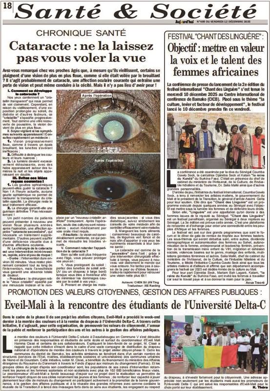 针对马里当地疾病谱特点,中国医疗队经过深入调研,选取了白内障、颈椎病及食道异物等高发或高风险健康问题,作为纸媒科普的首批核心主题。科普文章以通俗易懂的语言和直观的比喻,将复杂的医学知识转化为民众可理解、可操作的健康指南。