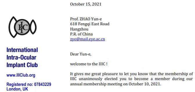 “我们专业的发展不能局限在国内,需要走出去,发出我们自己的声音。” 浙江省眼科医院(温州医科大学附属眼视光医院)副院长赵云娥在今年受邀加入由人工晶状体发明者眼科教授Harold Ridley爵士创办的国际人工晶状体植入俱乐部(International Intra-Ocular Implant Club,简称为IIIC)。10月,在该俱乐部的年度大会上,赵云娥教授的提名得到全票通过,一举成为该俱乐部的新会士。