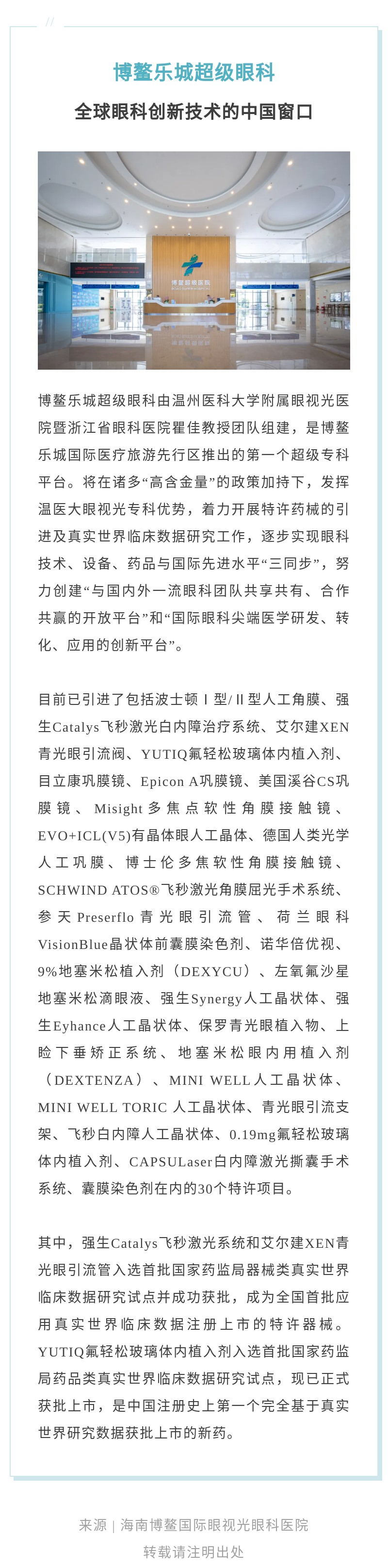 一次偶然的机会,黎迟得知博鳌乐城就有国际最先进的眼科技术。怀揣着最后的希望,在海南(博鳌)国际眼视光眼科医院,黎迟找到了陈蔚教授。