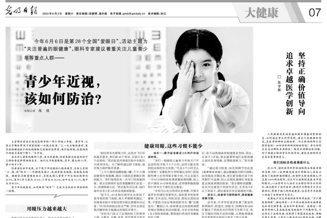 光明日报:青少年近视该如何防治?眼视光专家瞿佳、吕帆教授这样说